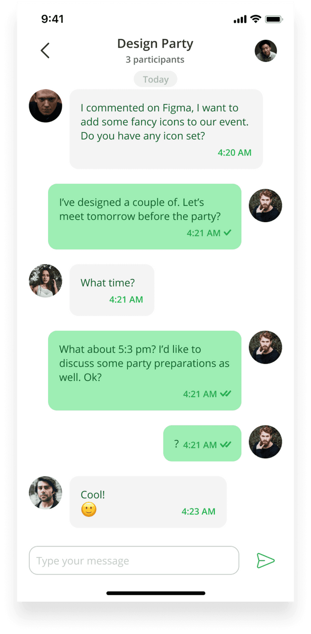 Since LinkApp main idea is to connect like-minded people based on their interests, we chose green as a main color of the app design. Green is about energy, fresh ideas, willingness to open new things. The overall aesthetics are minimalistic and clean. It keeps users focused on the core features of the app.